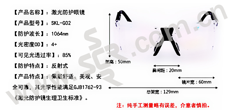 ·其光学安全性能完全满足GJB1762-93《激光防护镜生理卫生标准》