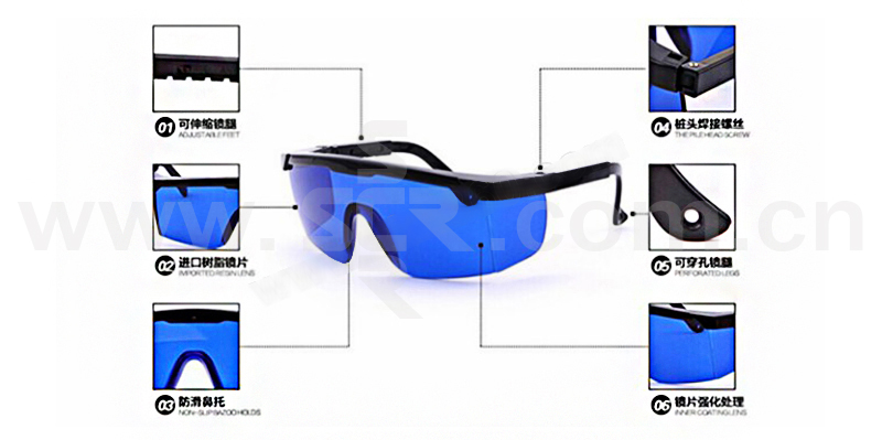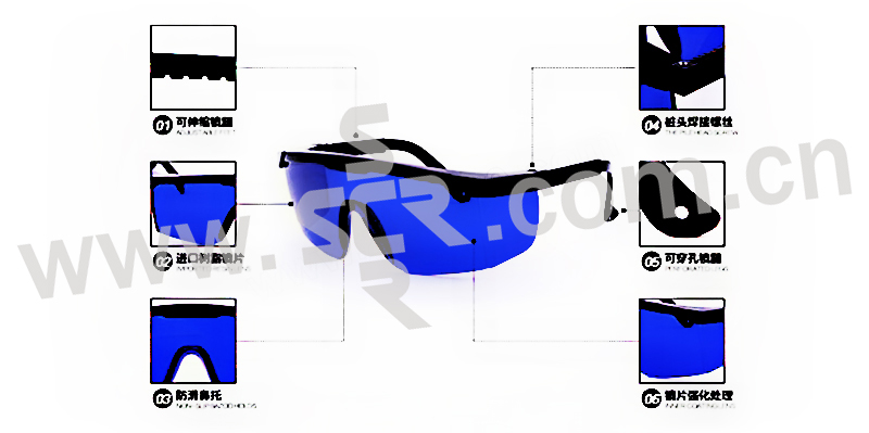 ·这款激光安全眼镜是反射式的,可全方位防护特定波段1064NM的激光和强光