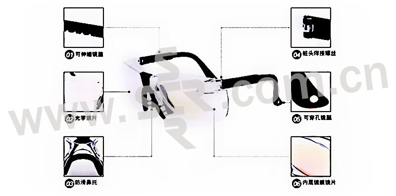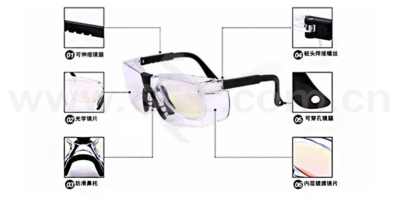 ·这款激光安全眼镜是反射式的,可全方位防护特定波段1064NM的激光和强光