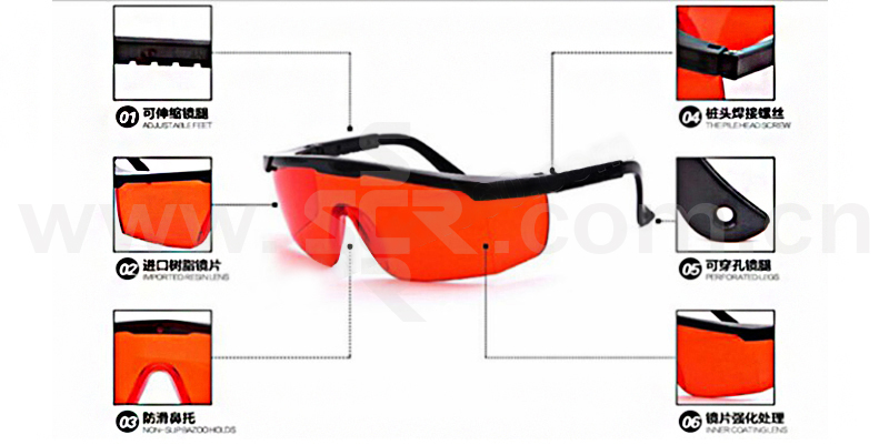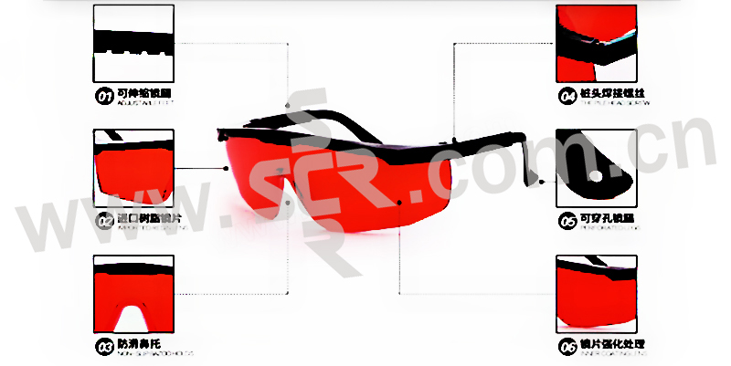 ·这款激光安全眼镜是反射式的,可全方位防护特定波段1064NM的激光和强光