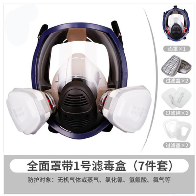 全面罩带1号滤毒盒7件套(面罩×1、过滤盒×2、过滤棉×2、过滤盖×2)
