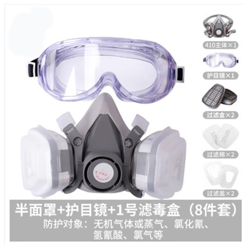 半面罩、护目镜、1号滤毒盒8件套(410主体×1、护目镜×1、过滤盒×2、过滤棉×2、过滤盖×2)