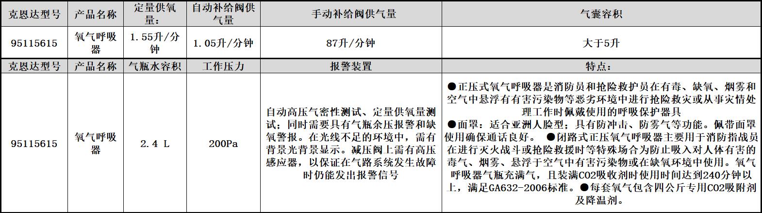 ·正压式氧气呼吸器是消防员和抢险救护员在有毒,缺氧,烟雾和空气中悬浮有有害污染物等恶劣环境中进行抢险救灾或从事灾情处理工作时佩戴使用的呼吸保护器具 面罩:适合亚洲人脸型;具有防冲击,防雾气等功能.佩带面罩使用确保通话良好. 闭路式正压氧气呼吸器主要用于消防指战员在进行灭火战斗或抢险救援时等特殊场合为防止吸入对人体有害的毒气,烟雾,悬浮于空气中有害污染物或在缺氧环境中使用.氧气呼吸器气瓶充满气,且装满CO2吸收剂时使用时间达到240分钟以上,满足GA632-2006标准.每套氧气包含四公斤专用CO2吸附剂