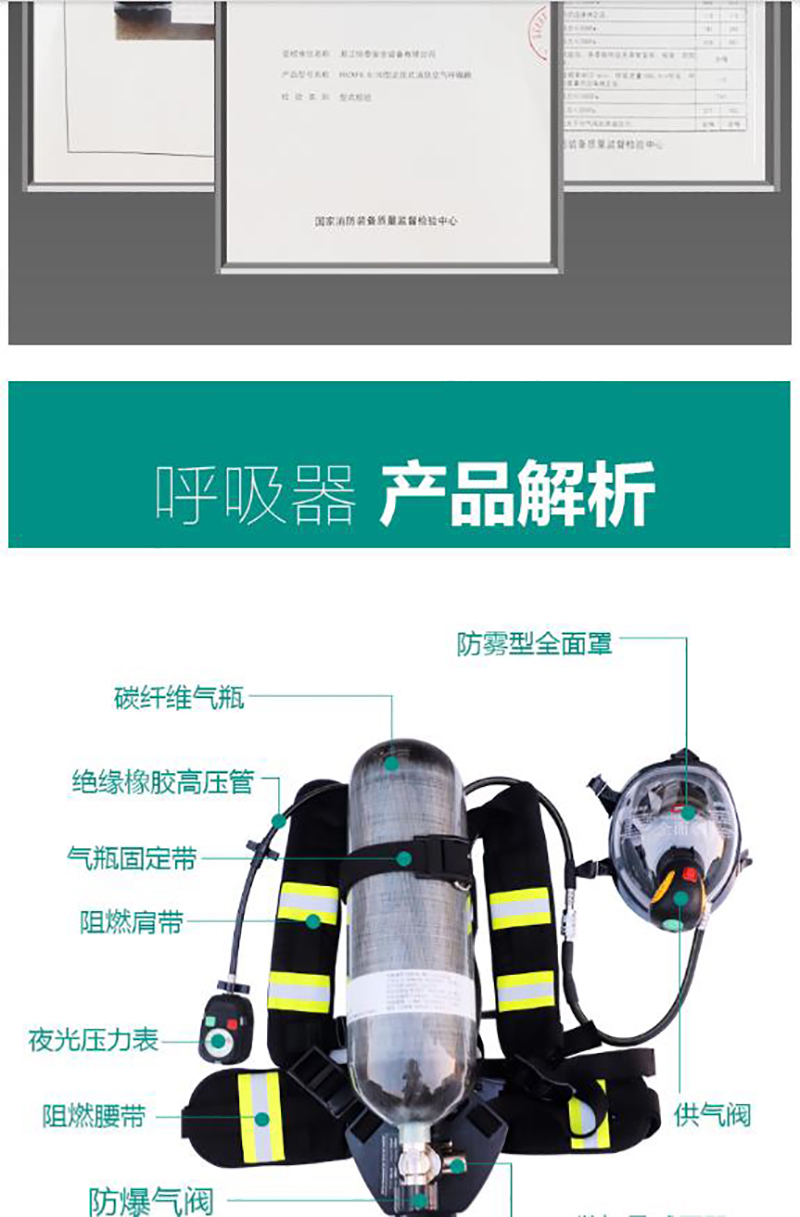 消防6.8L碳纤维呼吸器(声光电子报警)