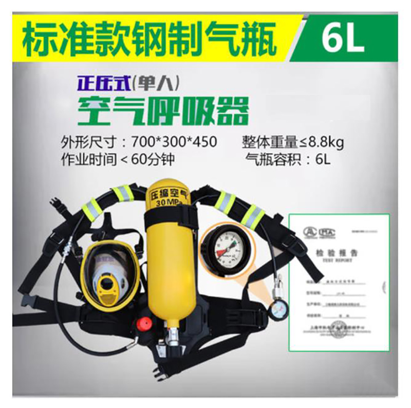 阻燃全面罩,具有防雾功能,球形面罩,视野率满足要求 背带及腰带采用芳纶材质,具有阻燃性能 ·6.8L碳纤维气瓶 气瓶质量轻,储气量大,配有阻燃保护套,配自锁瓶阀,防止意外关闭 ·供气阀外观黄色醒目,360度快速插接,操作方便,供气阀输出压力稳定,呼吸舒适度高