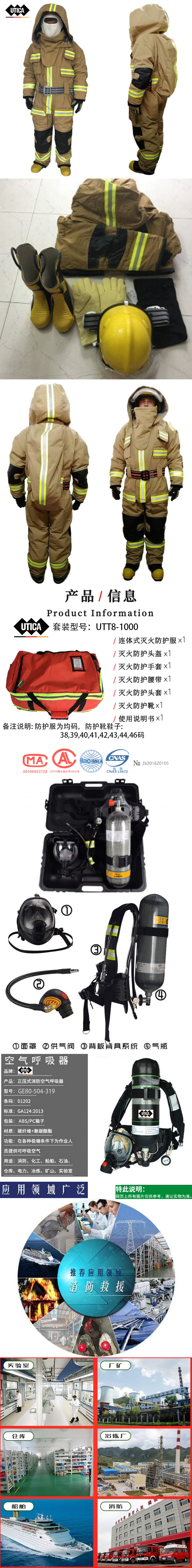 连体式消防灭火装具防护服套装正压式空气呼吸器炭纤维气瓶钢瓶呼吸面自给开放救生空气呼吸器