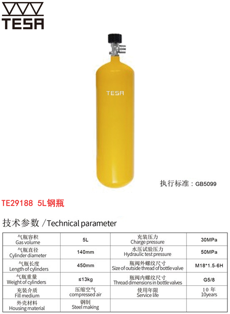 气瓶容积:5L