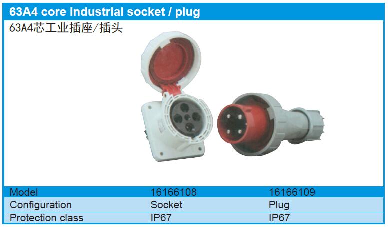 63A4 core industrial socket / plug