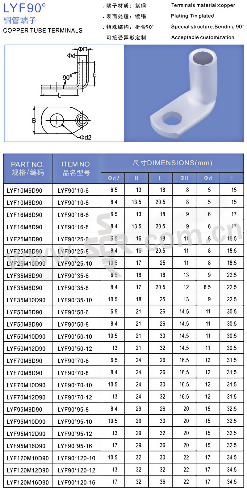 LYLUG/连优 LYF90°系列铜管端子 LYF90°10-6 62A 1个