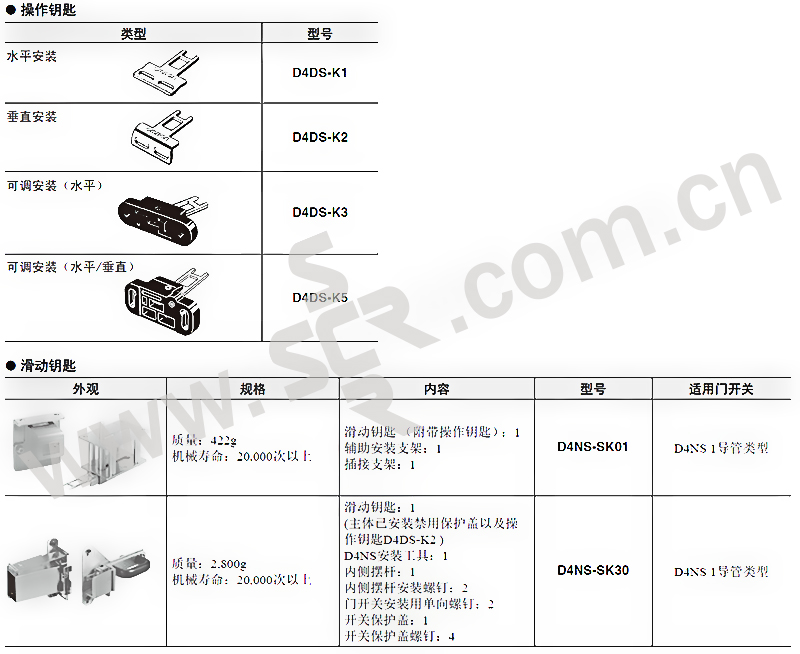· 配套安全门开关使用,根据不同的门开关配备不同的操作钥匙;另外,可根据现场情况选择不同类型的操作钥匙,包括水平安装、垂直安装、可调安装(水平)、可调安装(水平/垂直)。