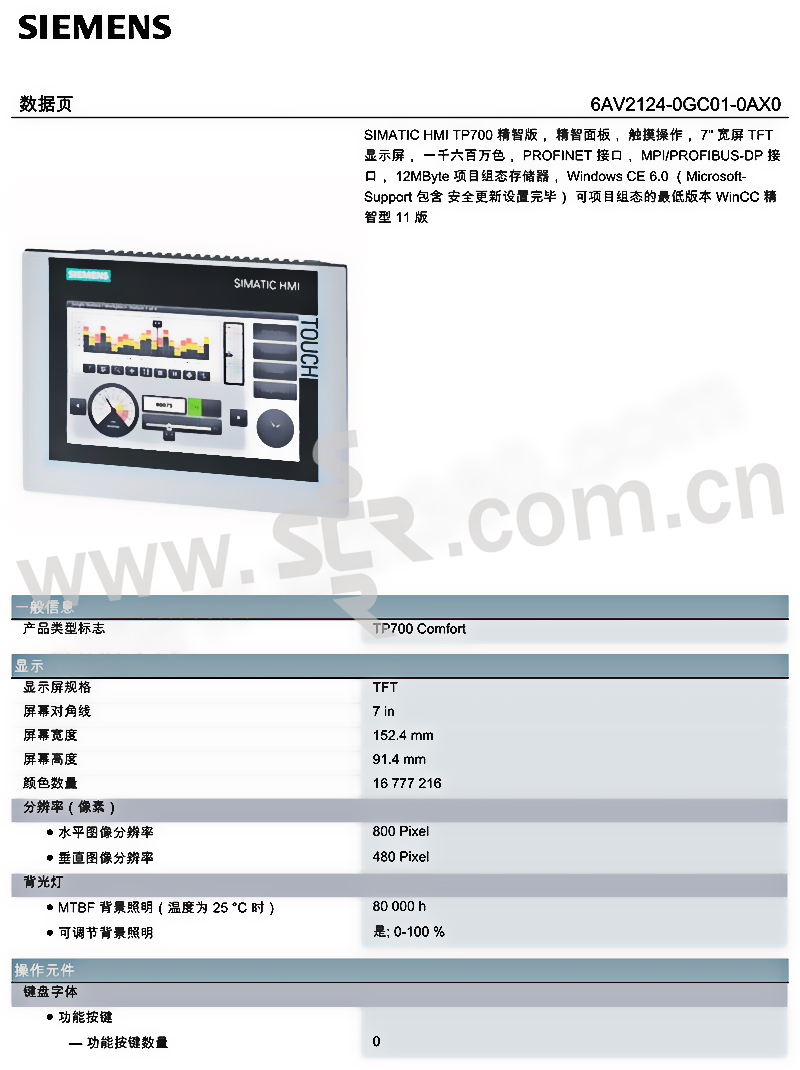 SIEMENS/西门子 HMI系列精智面板 6AV2124-0GC01-0AX0 1个