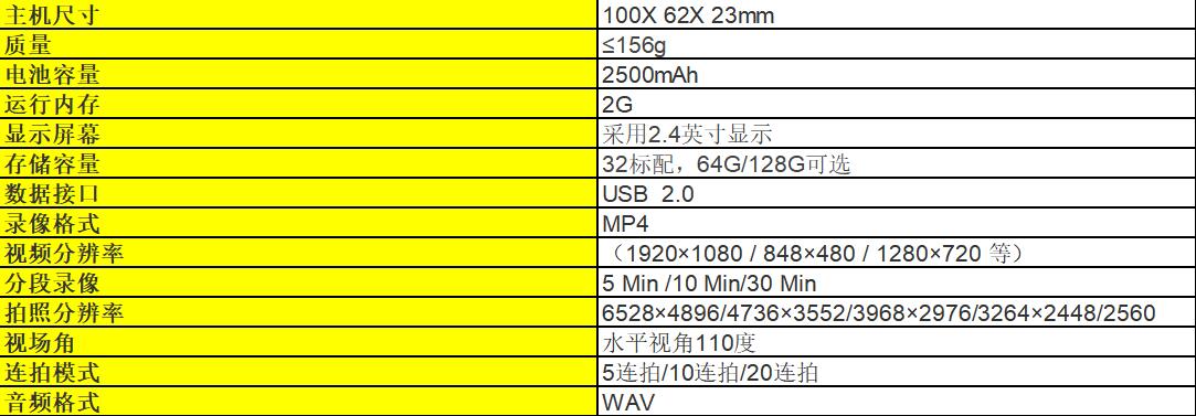 A32348 99700011 100×62×23 920×1080 /  /1280×720/ 864×480 移动电信联通4G全网通 IP56 2.4英寸触摸屏 电池可更换单块电池连续摄录时间≥5.5h 2560×1440/3264×2448/3968×2976/4736×3552/6528×4896 支持 支持 支持 8046.00