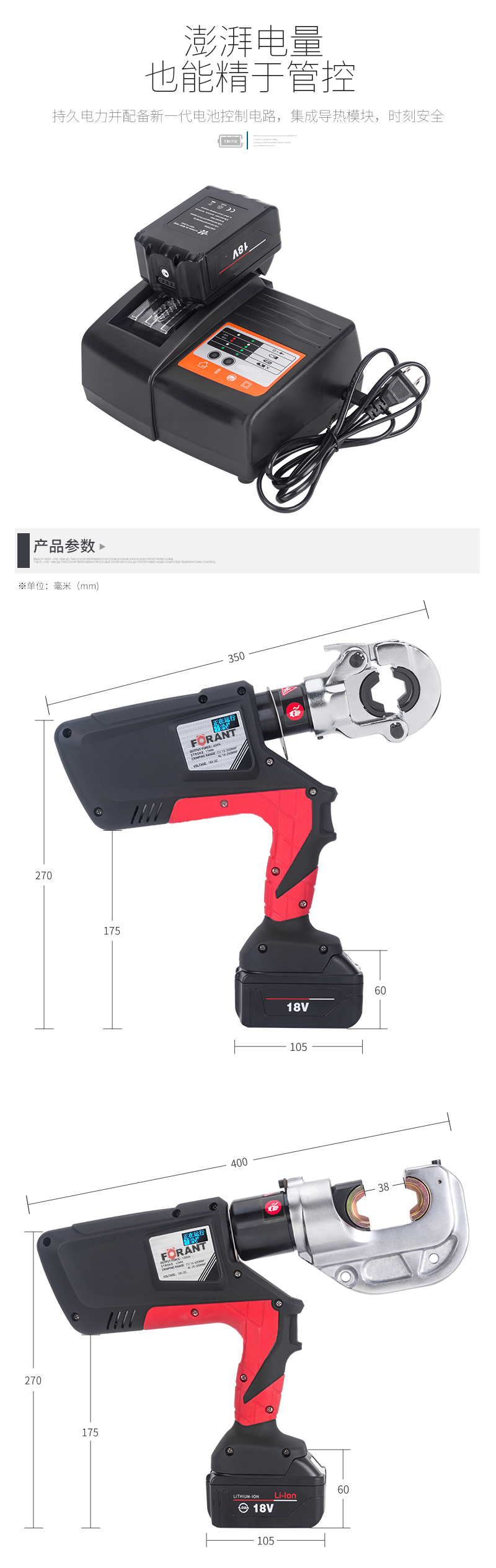 ·电池余电及电压油压显示更直观 ·强劲高容量18V锂电池驱动,用途广泛 ·握把符合人体工程学,操作舒适 ·设有加油口,易于维护 ·坚固的铁箱包装箱,储放工具和配件