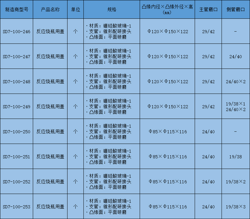 SLAMED 反应烧瓶用盖 单口 主管29/42 SD7-100-250