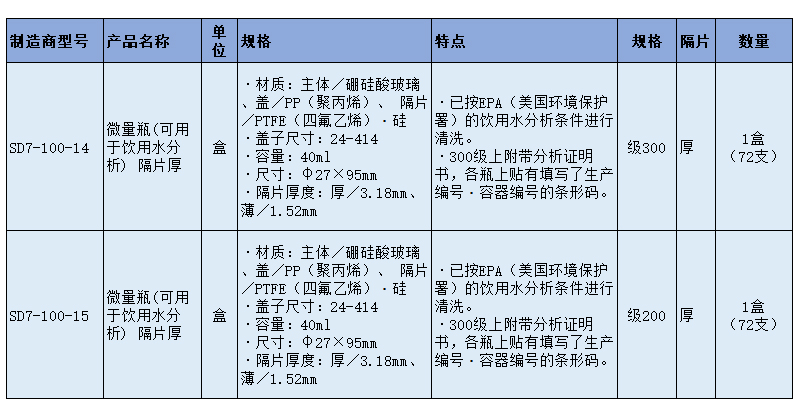 SLAMED 微量瓶(可用于饮用水分析) 隔片厚 级200 40ml
