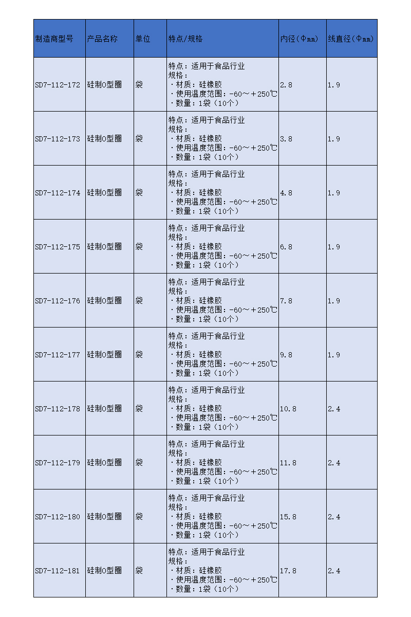 SLAMED 硅制O型圏 内径15.8mm 线直径2.4mm SD7-112-180