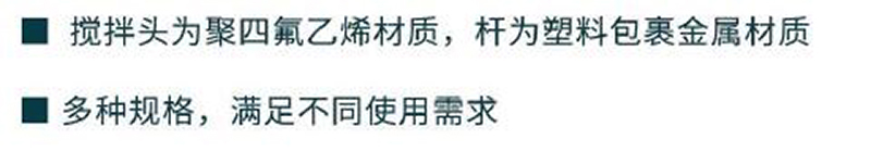 搅拌头为聚四氟乙烯材质,杆为塑料包裹金属材质