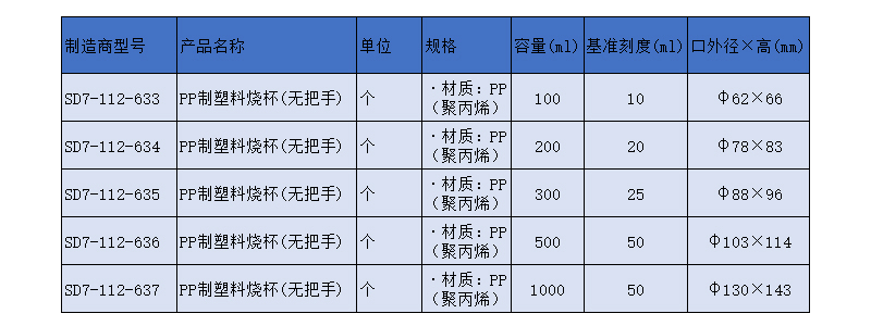 SLAMED PP制塑料烧杯(无把手) 500ml 基准刻度50ml φ103×114mm SD7-112-636