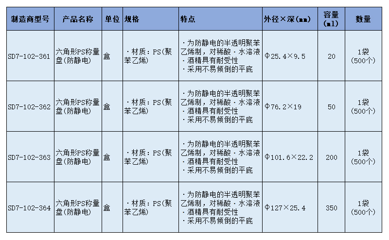SLAMED 六角形PS称量盘(防静电) M SD7-102-362