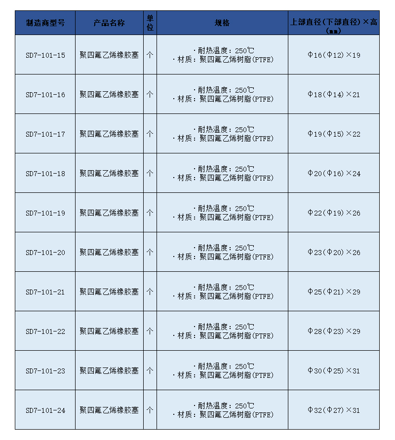 SLAMED 聚四氟乙烯橡胶塞 上部直径(下部直径)×高:φ32(27)×35mm SD7-101-24