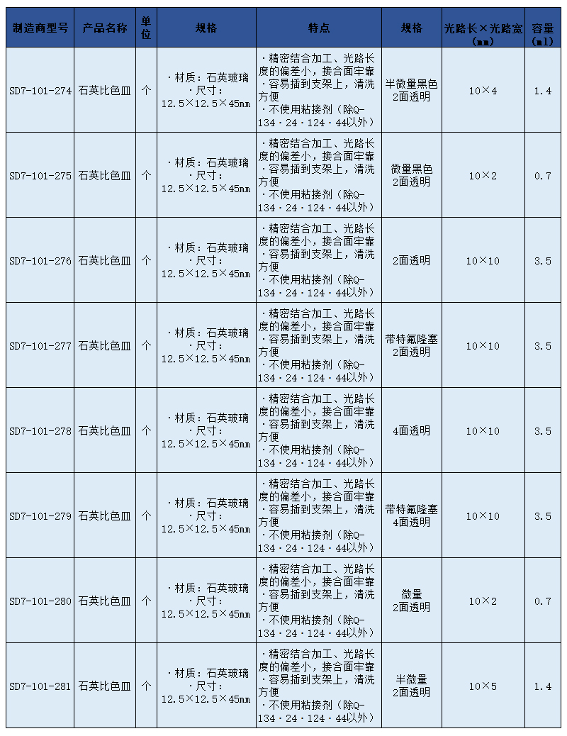 SLAMED 石英比色皿 半微量黑色两面透明 SD7-101-274