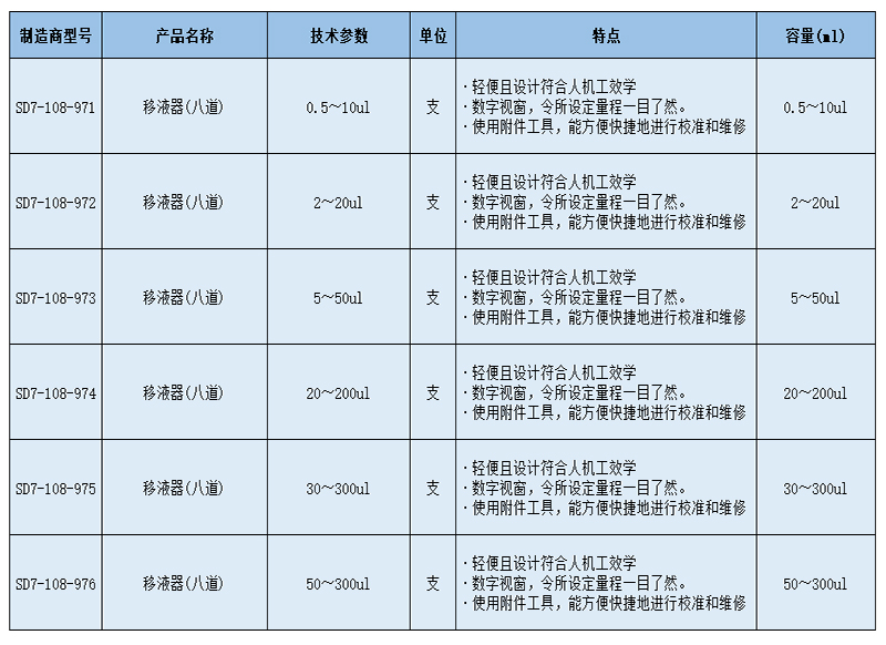 SLAMED 移液器(八道) 50~300ul SD7-108-976