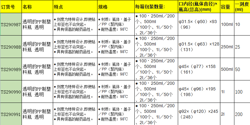 · 刻度为特殊设计,即使贴上标签也不会突起。 · 具有很高的耐药品性。