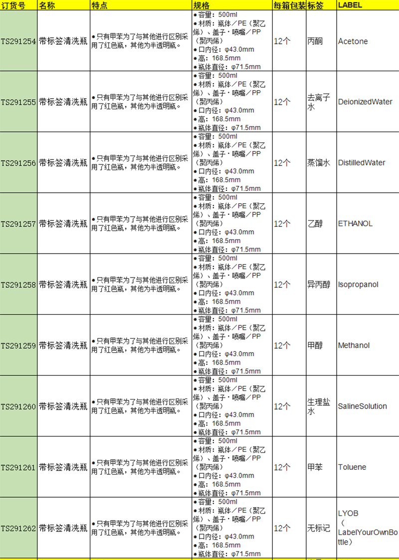 ·只有甲苯为了与其他进行区别采用了红色瓶,其他为半透明瓶。
