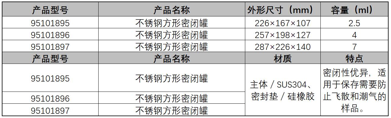 ·密闭性优异,适用于保存需要防止飞散和潮气的样品