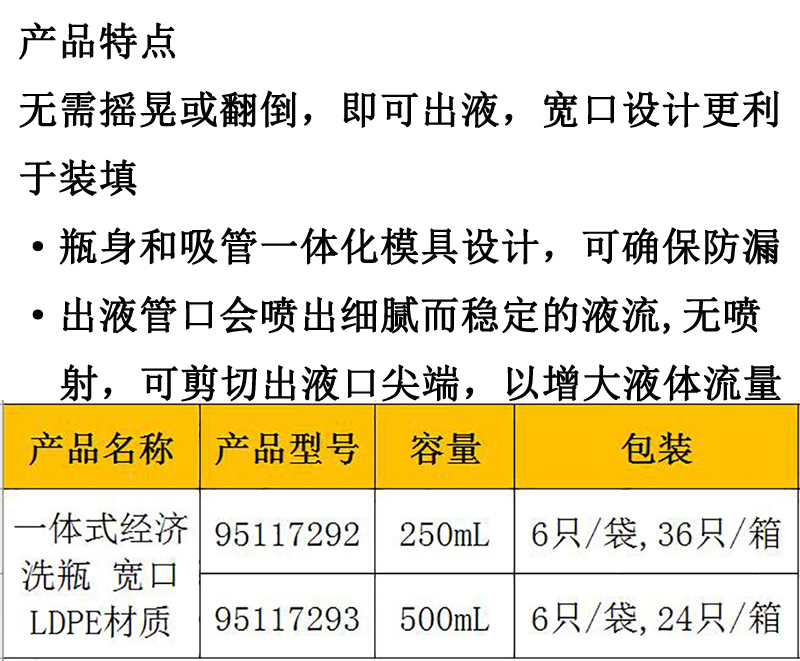LDPE材质宽口一体式经济洗瓶