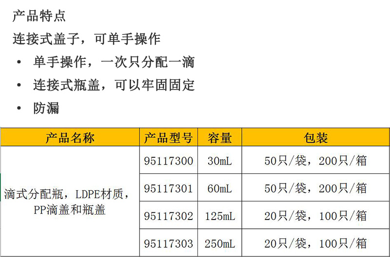 LDPE材质PP滴盖和瓶盖滴式分配瓶
