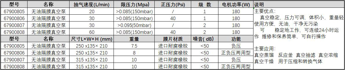 ·真空稳定,压力可调,体积小,重量轻使用方便,无油,干净无污染 ·可持久稳定地工作,可连续24小时运作 维修和保养简单,可自行操作