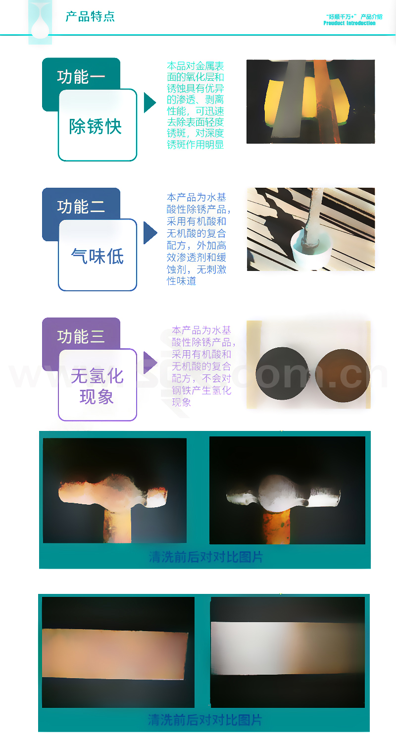 ·除锈快,气味低,不会对钢铁产生轻脆现象
