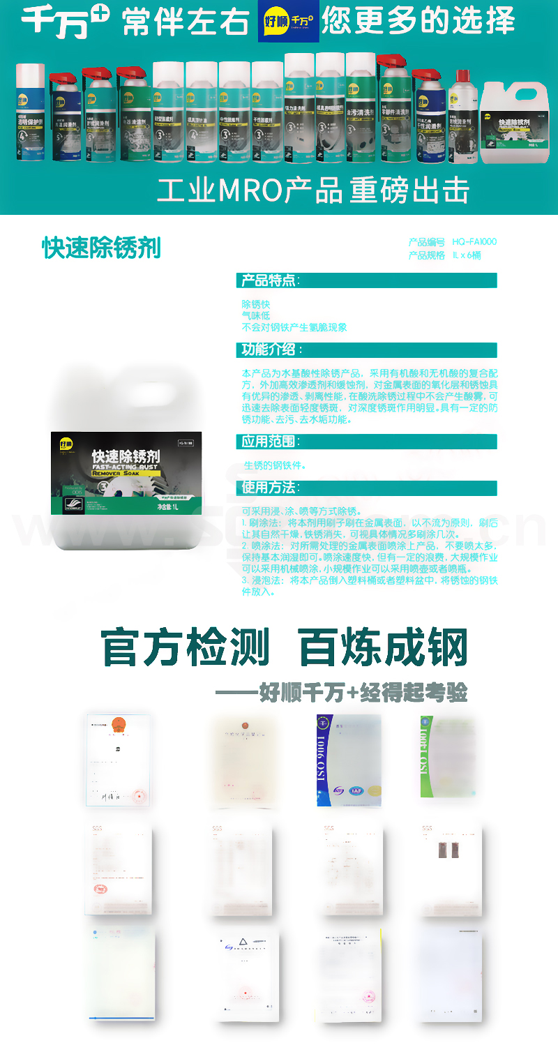 EU/好顺千万家 快速除锈剂 HQ -FA1000 1L 1桶