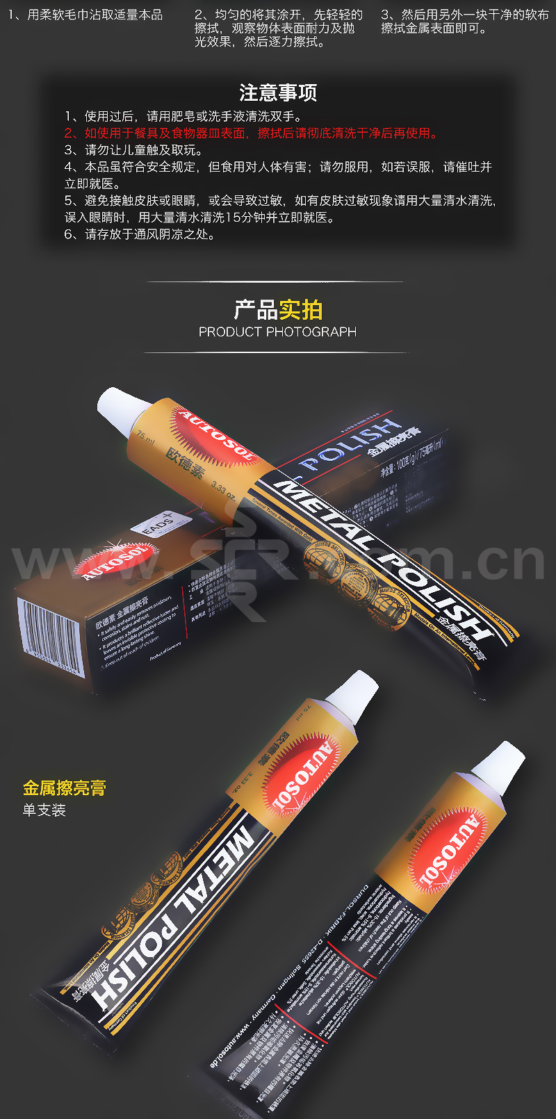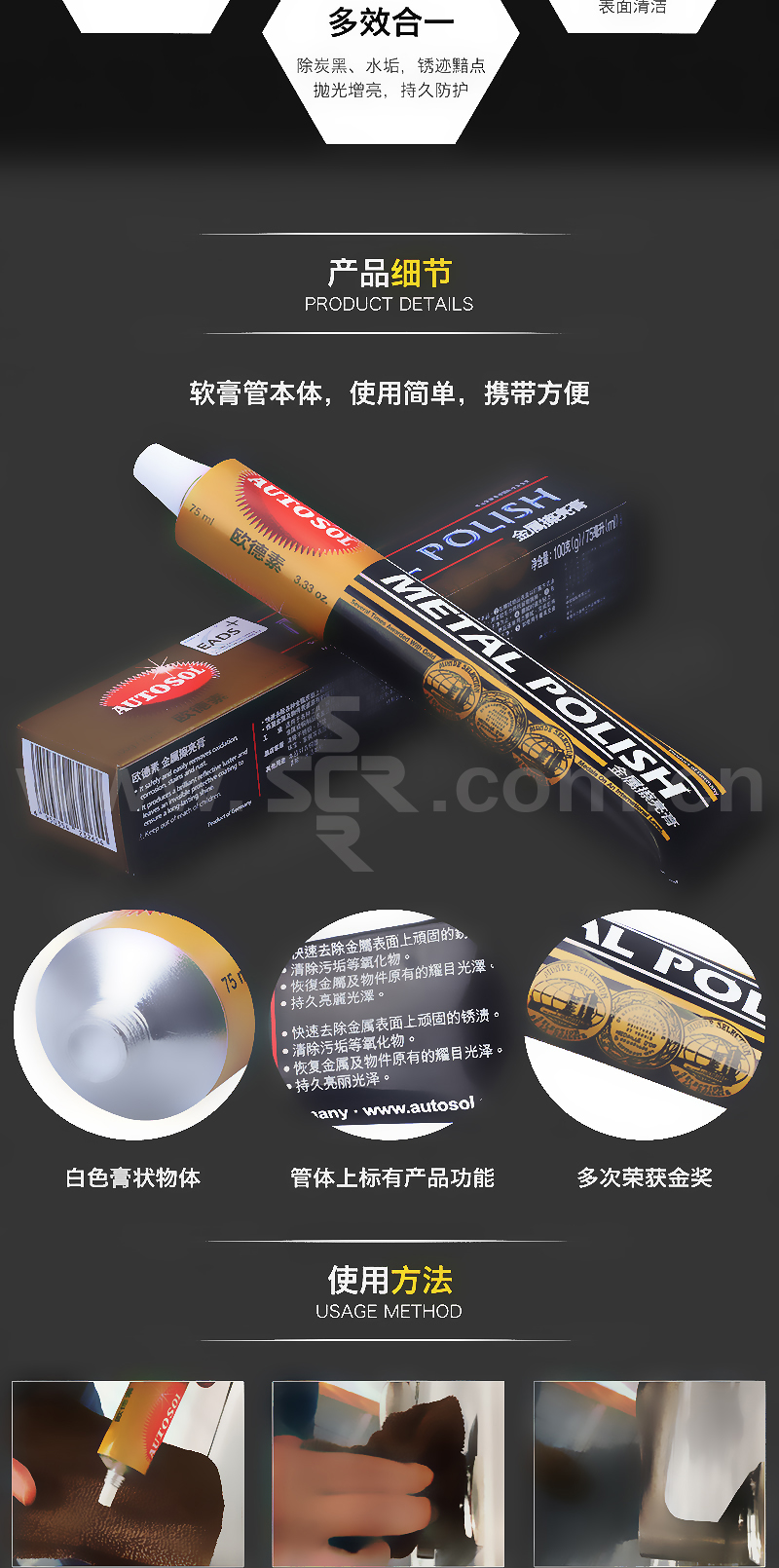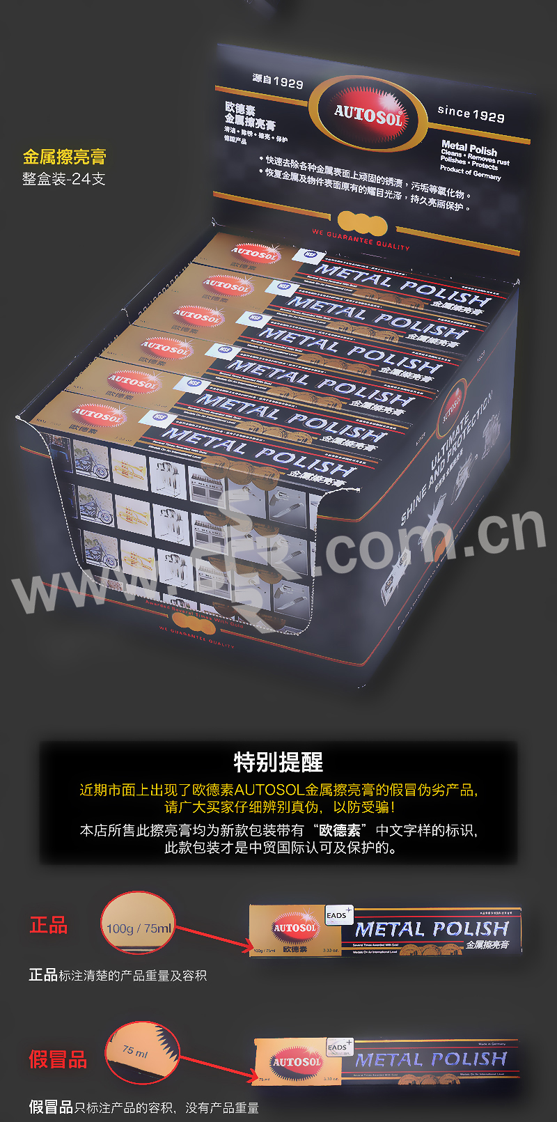 AUTOSOL/欧德素 进口金属擦亮膏整盒装 75mL(100g)×24支 1盒