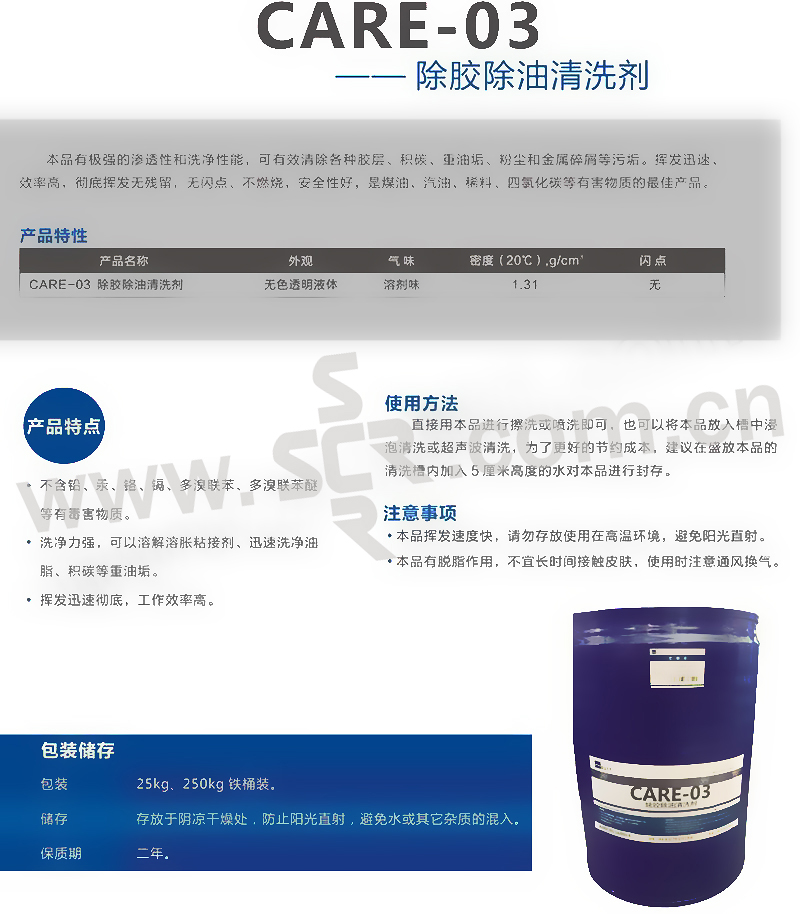 ·洗净力强,可以溶解溶胀粘结剂、迅速洗净油脂、积碳等重油垢