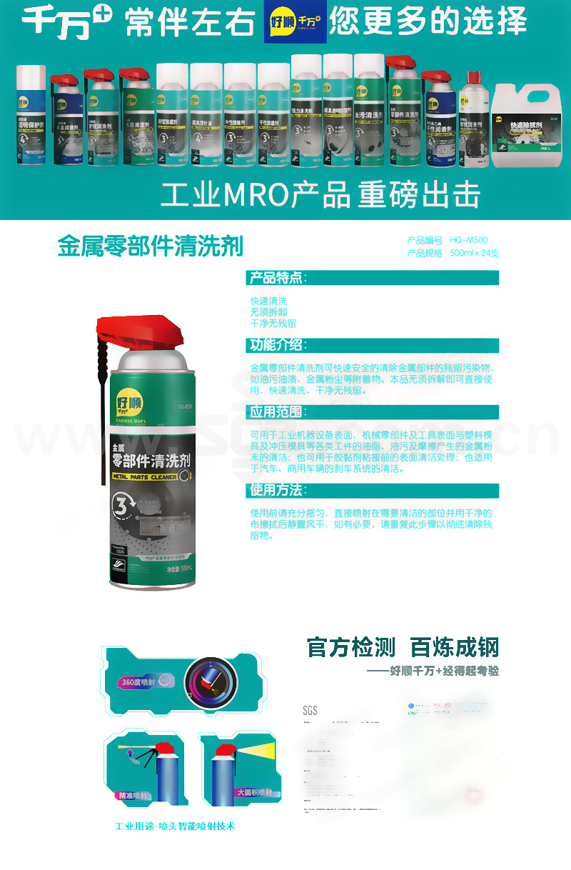 EU/好顺千万家 金属零部件清洗剂 HQ-M500 500mL 1罐