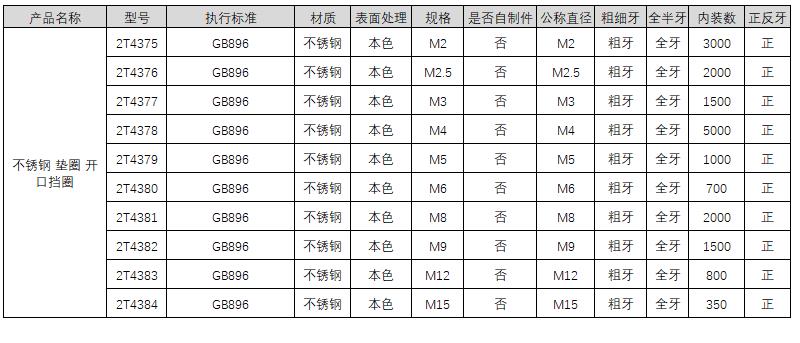 C83376 2T4376 GB896 GB896 不锈钢 本色 M2.5 M2.5 粗牙 全牙 2000 0.03