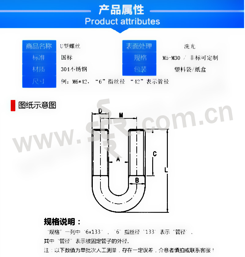 LG/狼狗 不锈钢管卡 M6×51 1个