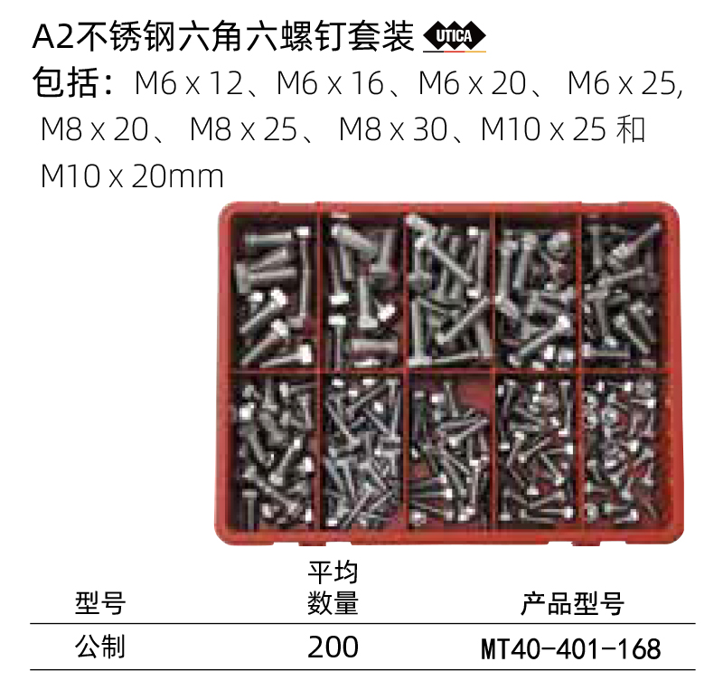 不锈钢六角六螺钉套装 公制