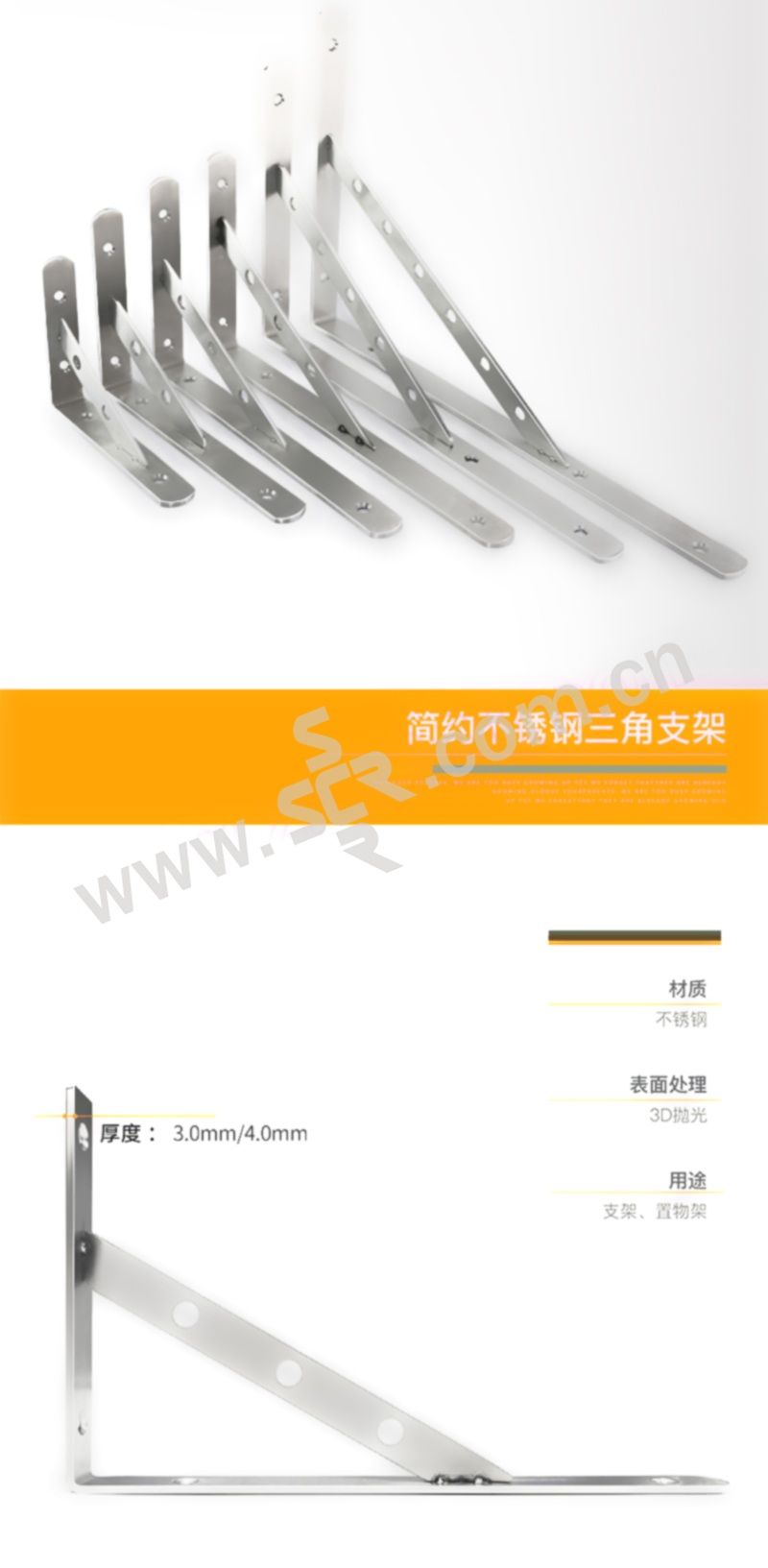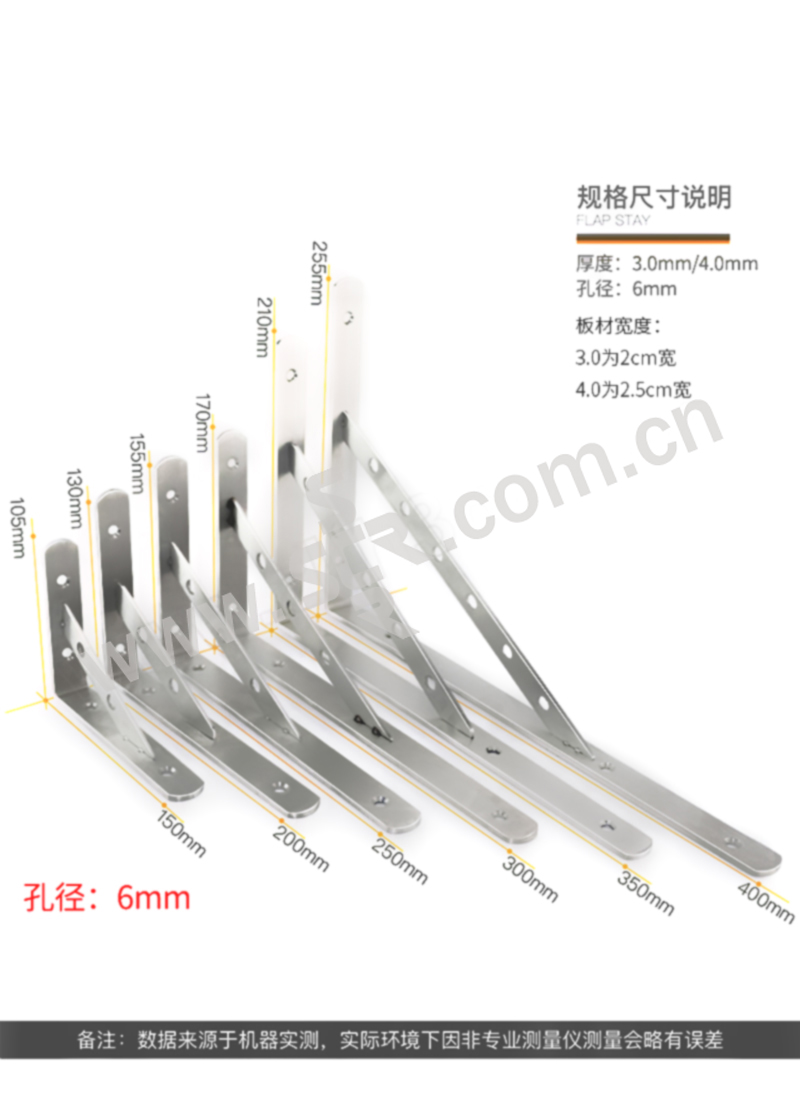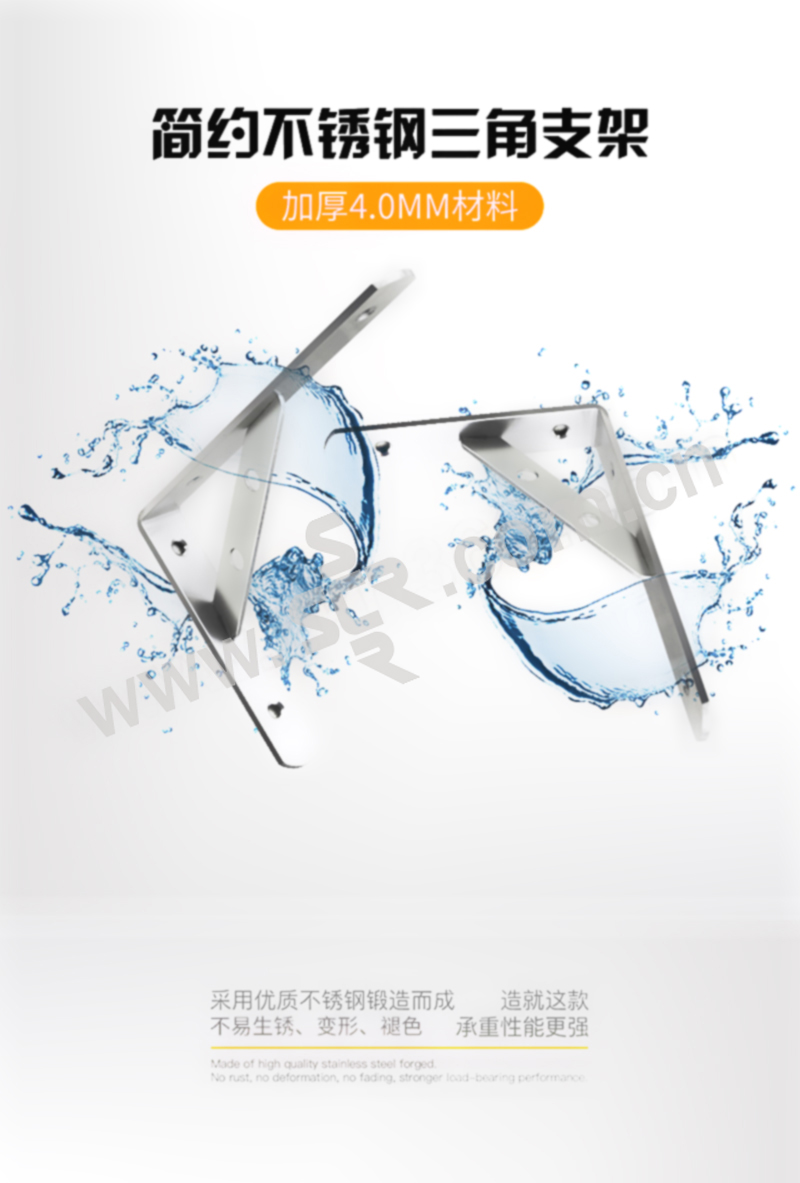 HYSTIC/海斯迪克 gnjz-1004系列加厚不锈钢三角支架 厚度4mm 边长400mm 1个
