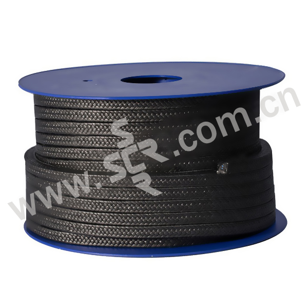 ·四氟石墨纤维编织盘根(也叫黑四氟)是由含有石墨粒子的聚四氟乙烯线编织而成