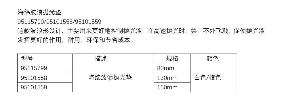 ·这款波浪形设计,主要用来更好地控制抛光液,在高速抛光时,集中不外飞溅,促使抛光液发挥更好的作用,耐用,环保和节省成本