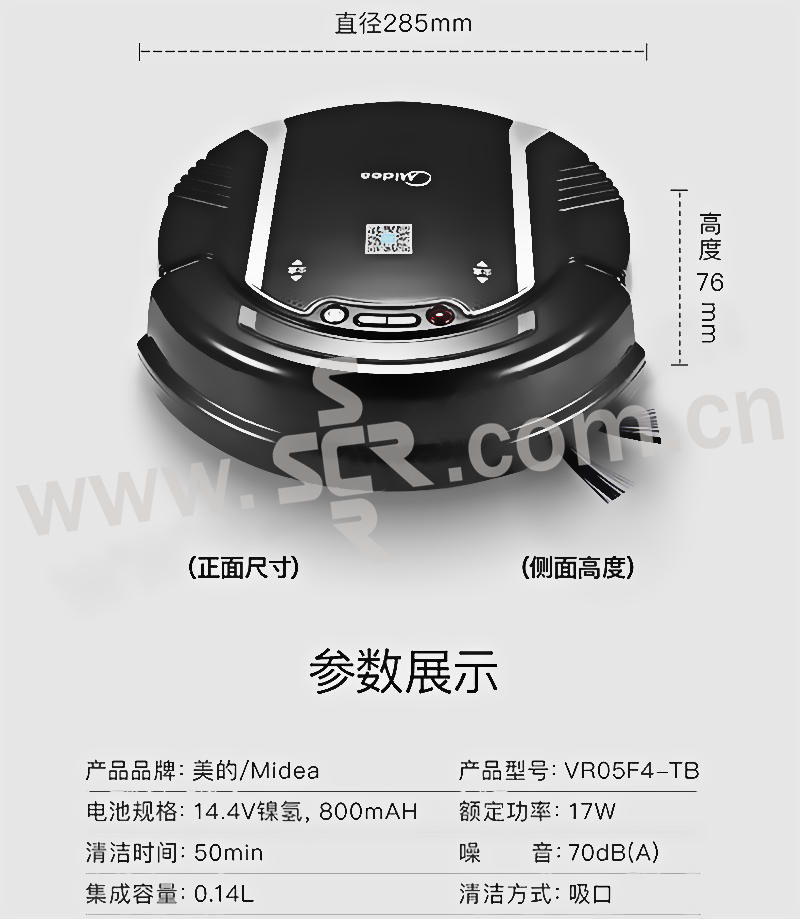MIDEA/美的 智能家用扫地机器人 VR05F4-TB 24V 17W 140mL 800mA 1台