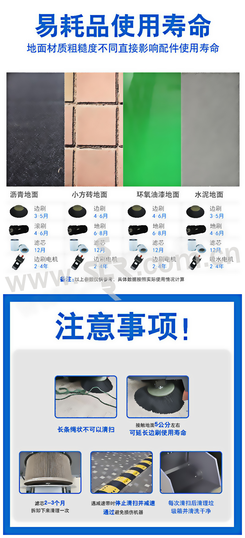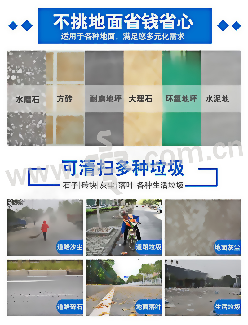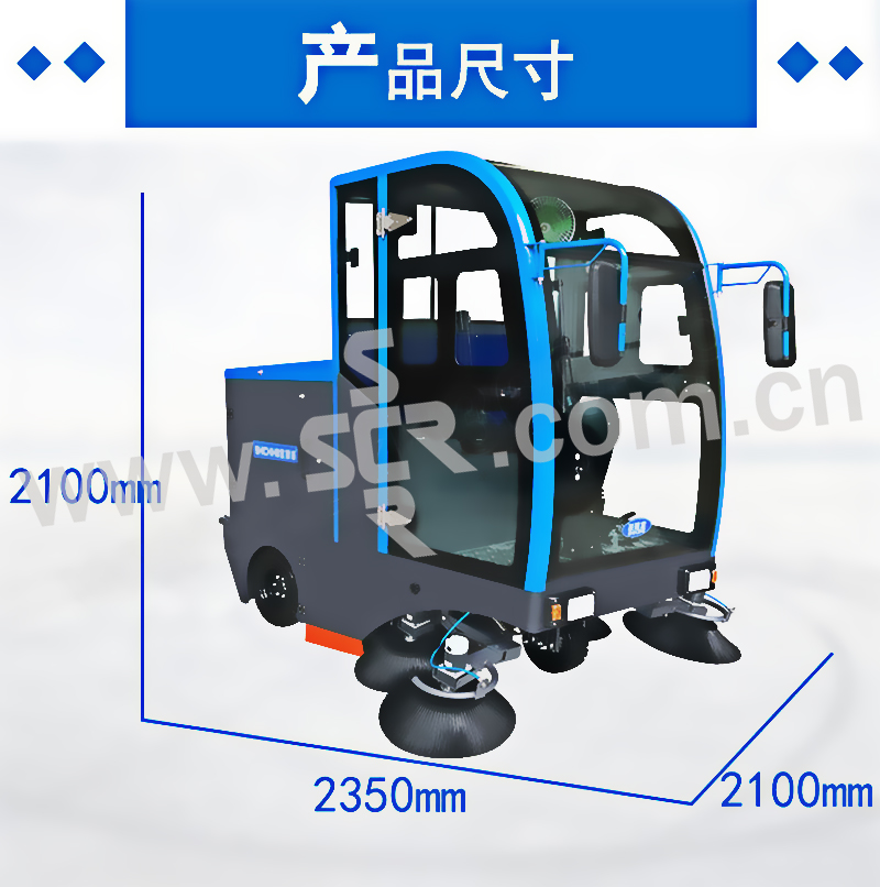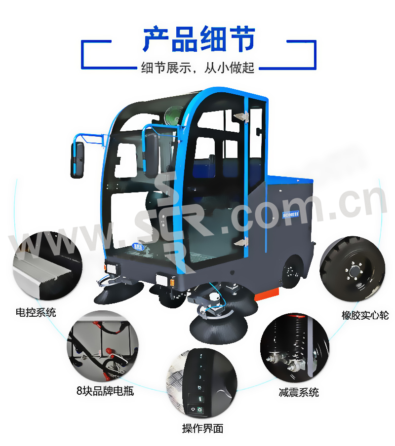 ·4根高强度液压减震器,有效保护机身,驾驶更舒适·电控系统欠压过载保护防止电机过载受损·一键启动电动雨刮器,雨天行驶更安全·强力电动振尘系统,提高滤芯使用寿命和运行时通畅·橡胶实心大轮,耐磨防腐蚀·整车90%采用5MM加厚冷钢,坚固耐用,不易变形