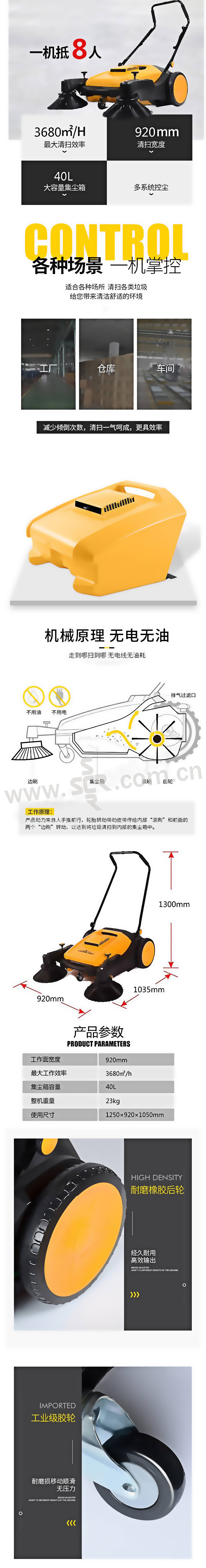 ·满足大工业重尘清扫,无动力清扫,省时省力。