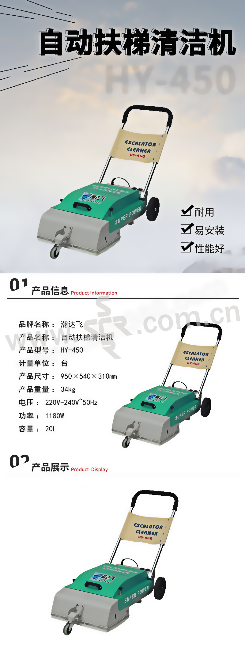HANDAFEI/瀚达飞 自动扶梯清洁机 HY-450 240V 清扫宽度450mm 1.18kW 20L 950×540×310mm 34kg 50Hz 1台