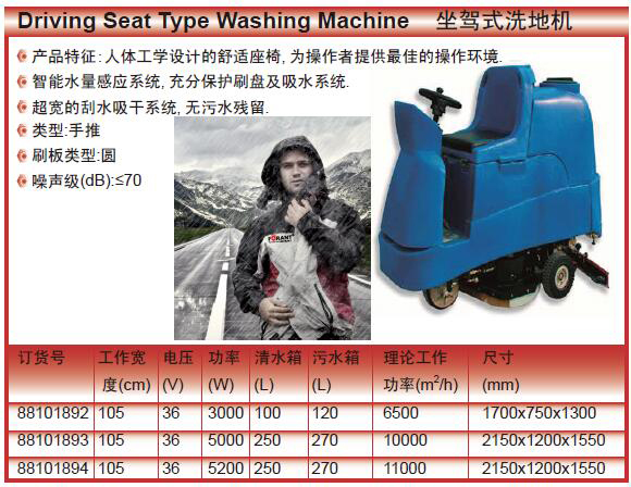 ·人体工学设计的舒适座椅,为操作者提供最佳的操作环境. ·智能水量感应系统,充分保护刷盘及吸水系统. ·超宽的刮水吸干系统,无污水残留. ·类型:手推 ·刷板类型:圆 ·噪声级(dB):≤70