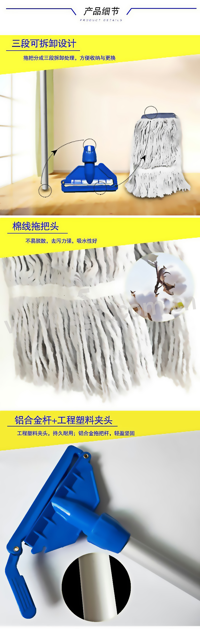 SAFEWARE/安赛瑞 商用棉拖把 24393 15×35cm 长1.6m 1把