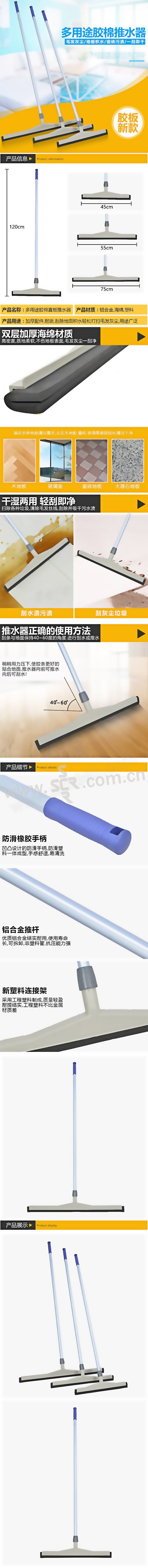 BYQJ/白云清洁 胶板直板海绵推水刮 工作面宽45cm 杆长1.2m 1个